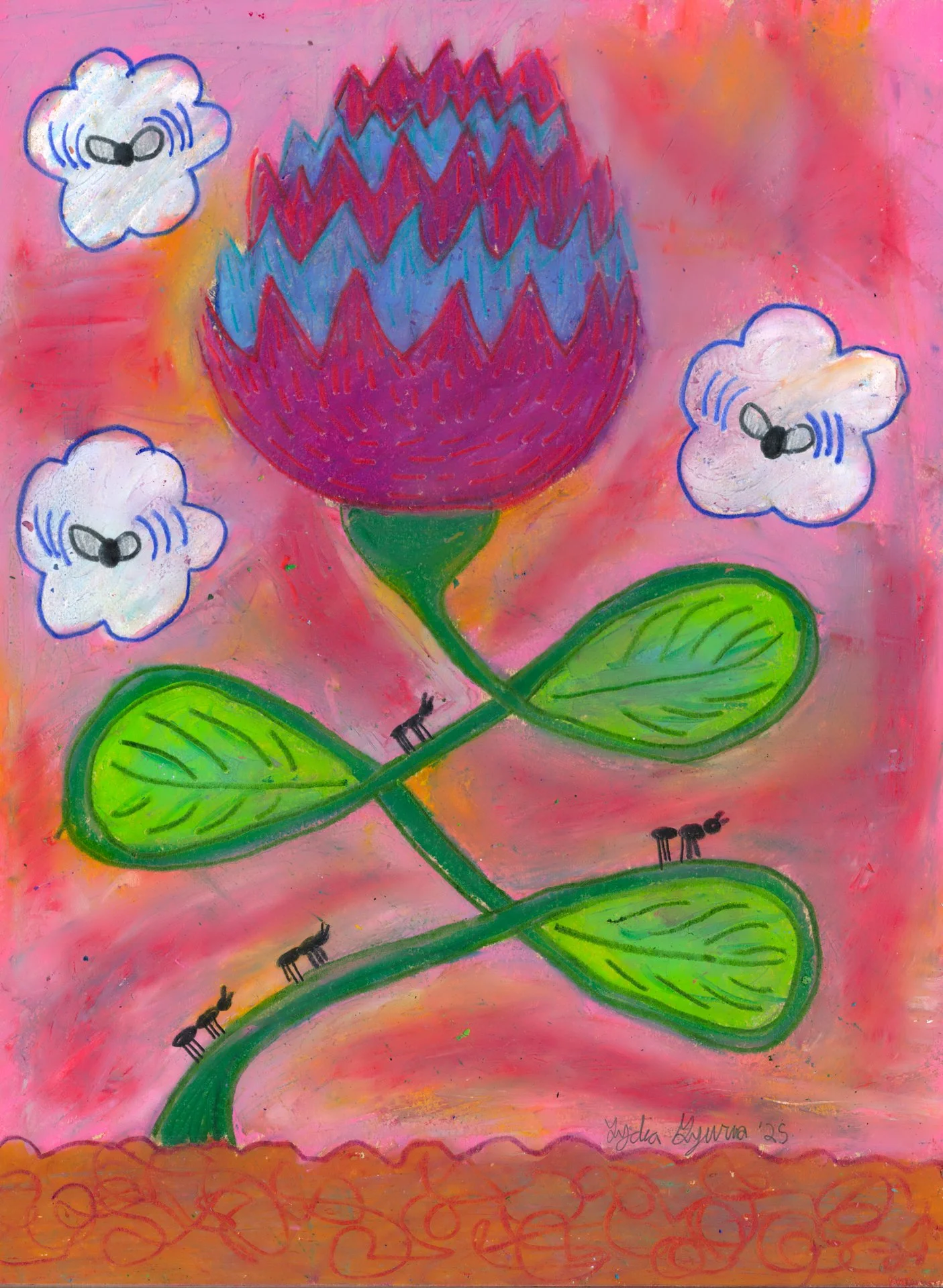 I’m an abstract artist specializing in highly saturated oil pastel, currently on a small scale, less than 9”x12.” With an educational background in experimental animation and video, I incorporate methods of iteration, sequencing, and opaque storytelling in my creative process.
